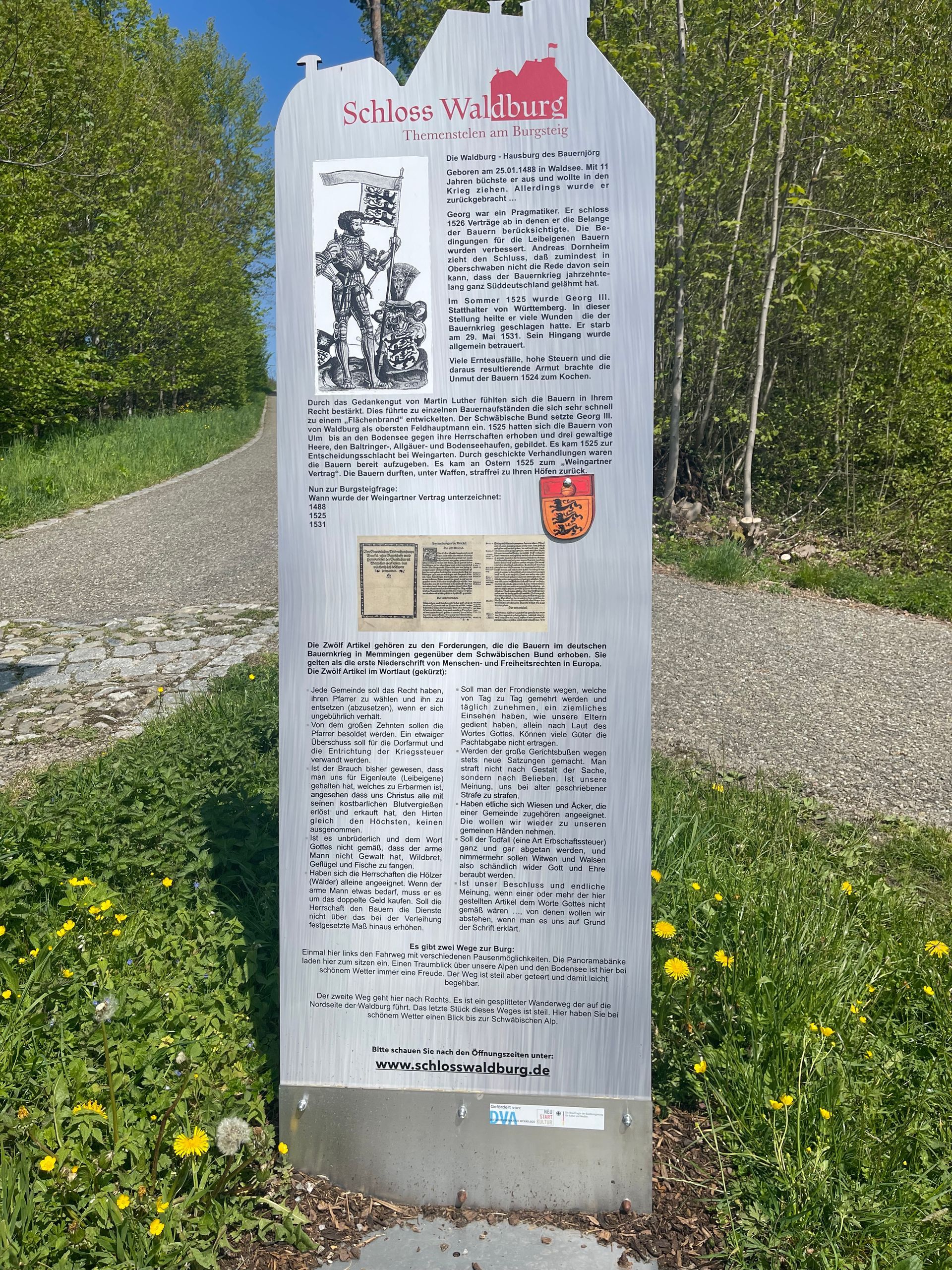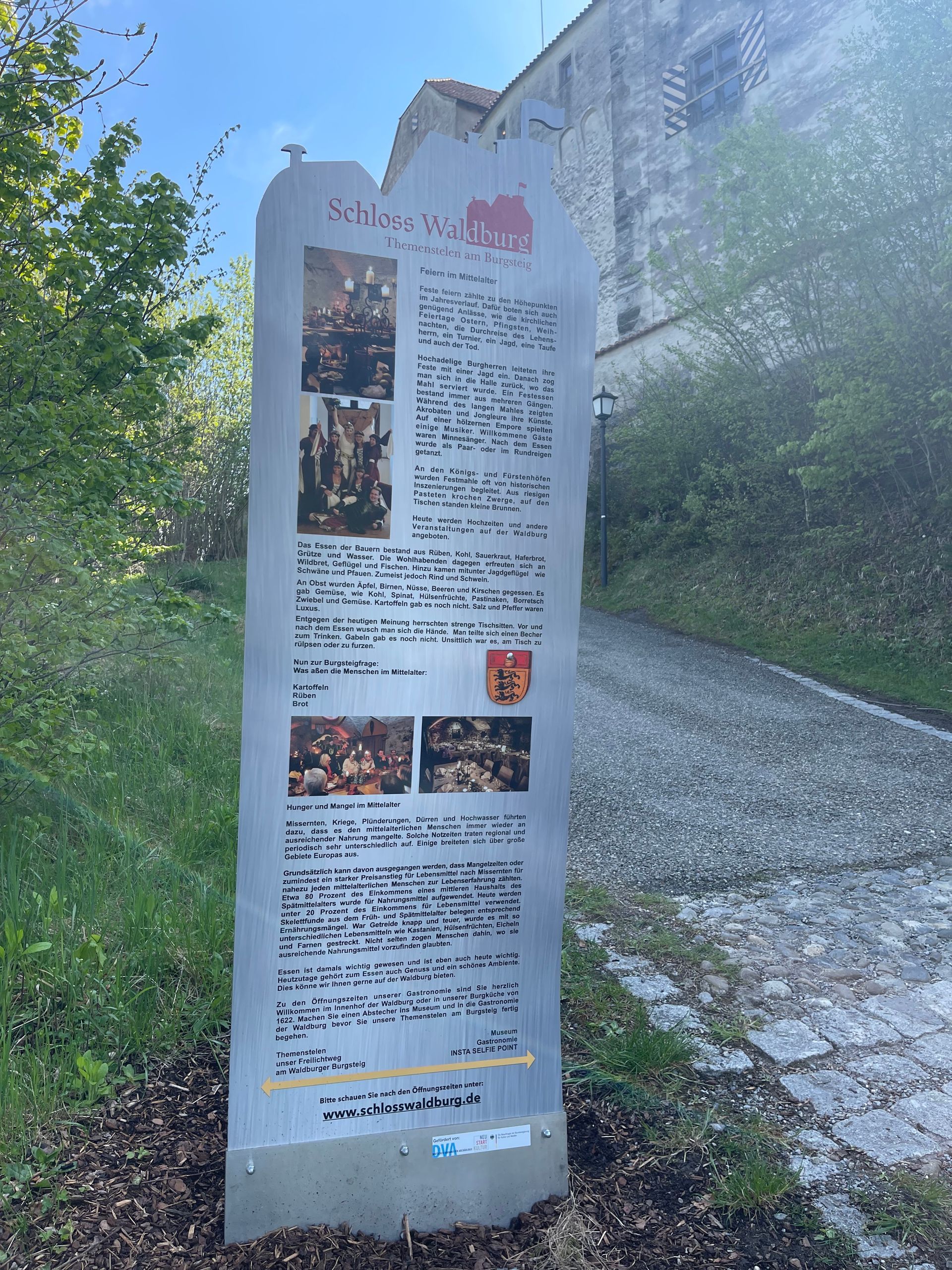 Der Weg zur Burg ist das Ziel. Einmal davon abgesehen dass Sie immer durch die schönsten Regionen Deutschlands fahren müssen wenn Sie zu uns kommen ist der Burgberg schon ein Ziel. Die Anreise durch das Allgäu oder vom Bodensee oder durch Oberschwaben ist schon sensationell. Der Themenstelenweg am Burgsteig mit seinem kostenfreien Quiz ist eben auch ein Besuch wert. Für Schulklassen bieten wir ein Kreuzworträtsel am Burgsteig und für Gruppen eine Kräuterführung an. Eben der Weg ist schon ein Ziel ...