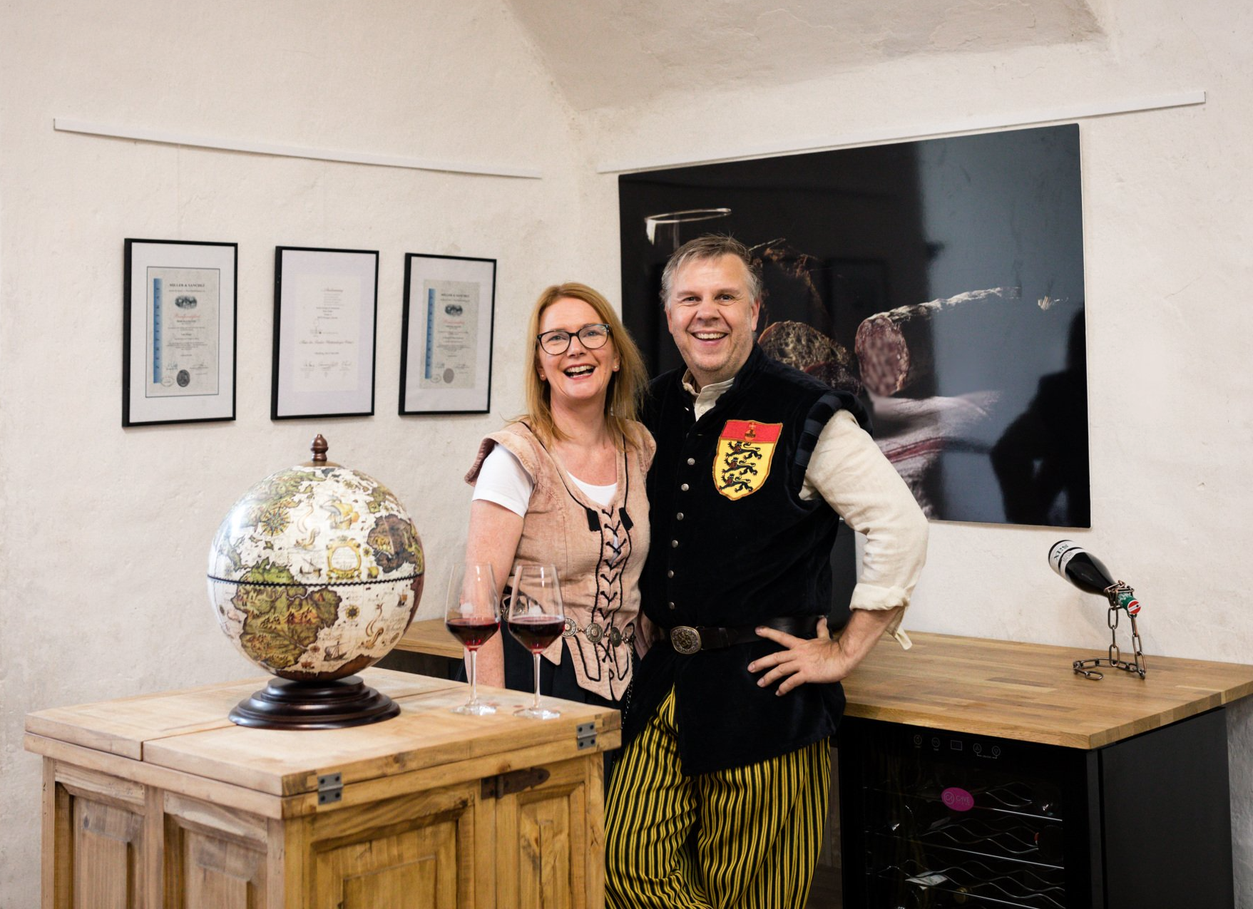 Unser Café mit Vinothek ist immer zu den Öffnungszeiten der Erlebniswelt für Besucher geöffnet, auch wenn die große Speisekarte unserer Burgküche hier nicht serviert wird. Sie bekommen hier Café und Kuchen, kleine Gerichte, tolle Weine. Ideal um sich vor oder nach dem Museumsbesuch zu stärken. Der wundervolle mittelalterliche Innenhof bietet hier eine tollen Rahmen zu verschnaufen. Fragen Sie nach unseren Weinproben unserer Vinothek - Sie werden viel Freude haben.
